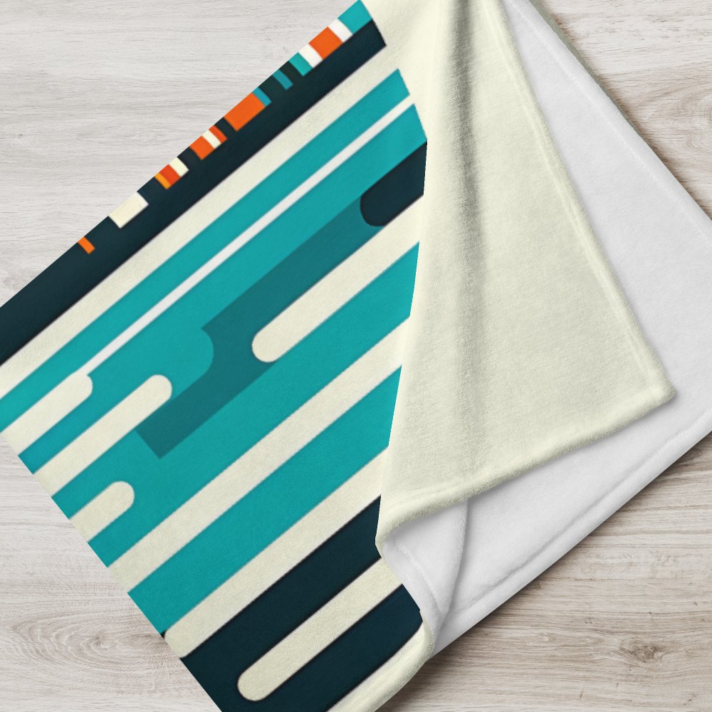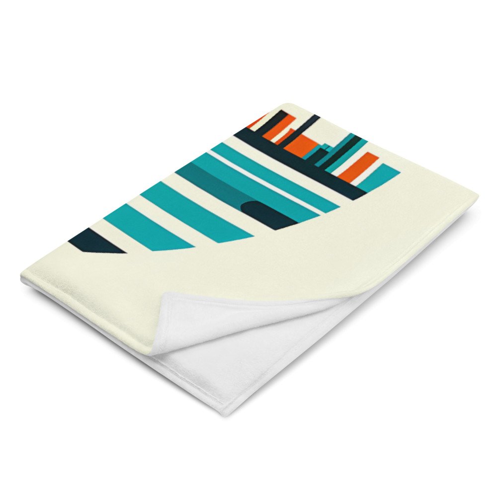The geometric cityscape is woven into the soft, cosy surface of this sherpa fleece throw. Its retro neon palette of warm orange and cool teal makes for a distinctive and comforting layer during cooler evenings.