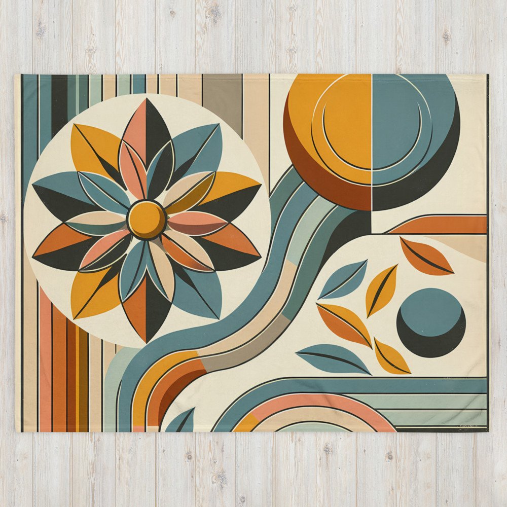 Geometric Botanical Flower with Retro Arches — Throw Blanket