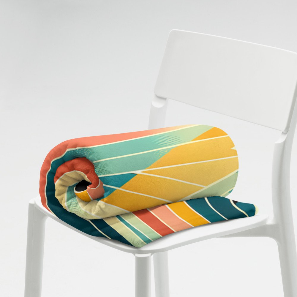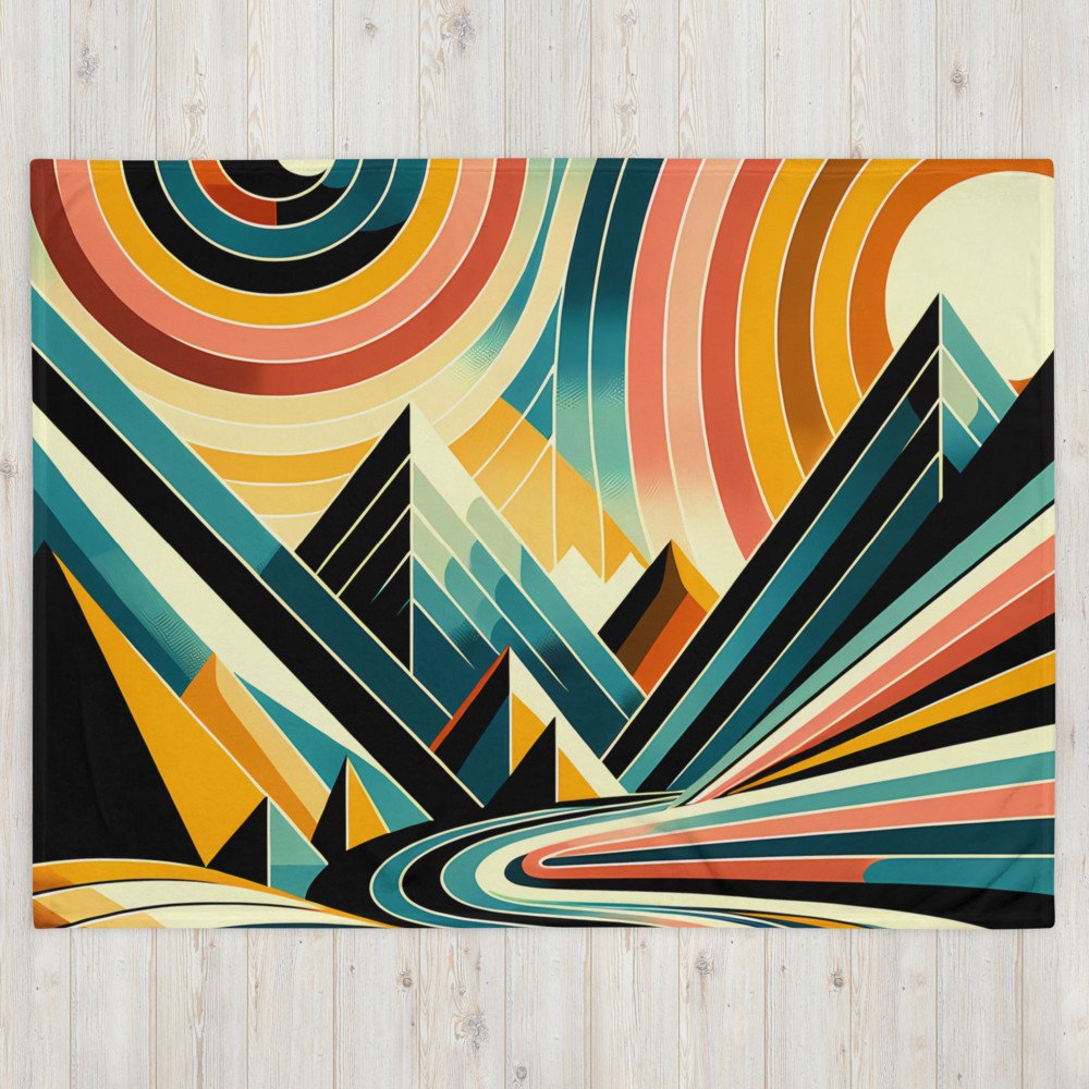 Geometric Mountain Silhouettes with Retro Sun Rings — Throw Blanket