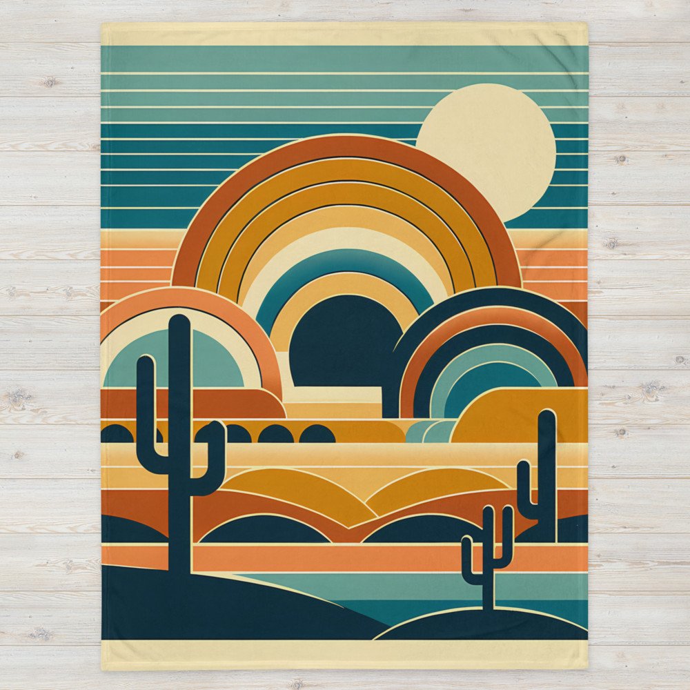 Dune ArcadiaRetro Desert Arches at Sunset — Throw Blanket