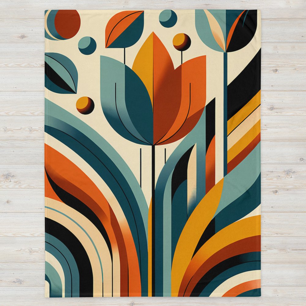 Amber GroveGeometric Botanical Flower in Teal and Orange — Throw Blanket