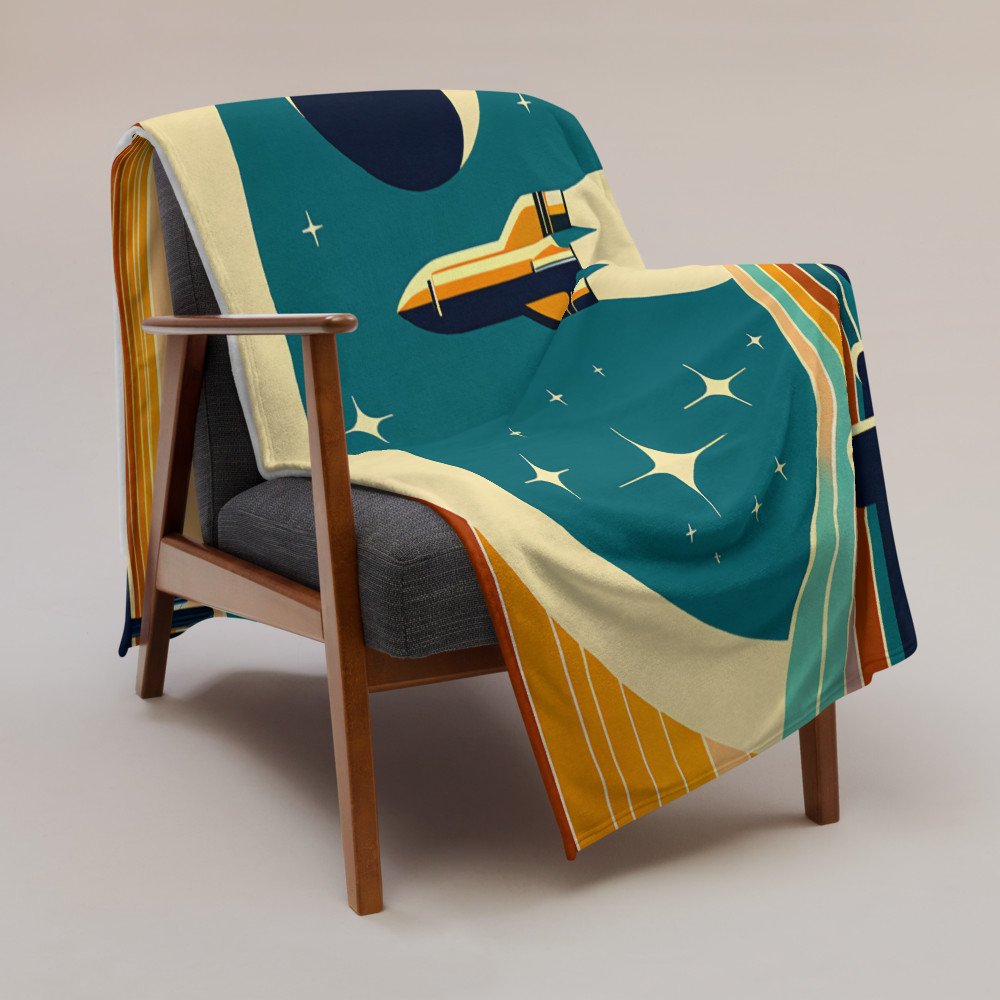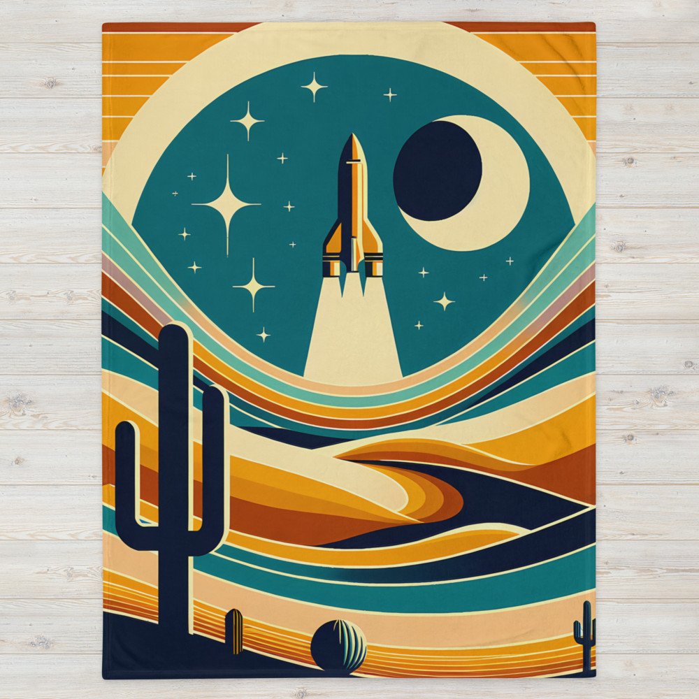 Saffron OrbitRetro rocket over desert moonscape — Throw Blanket