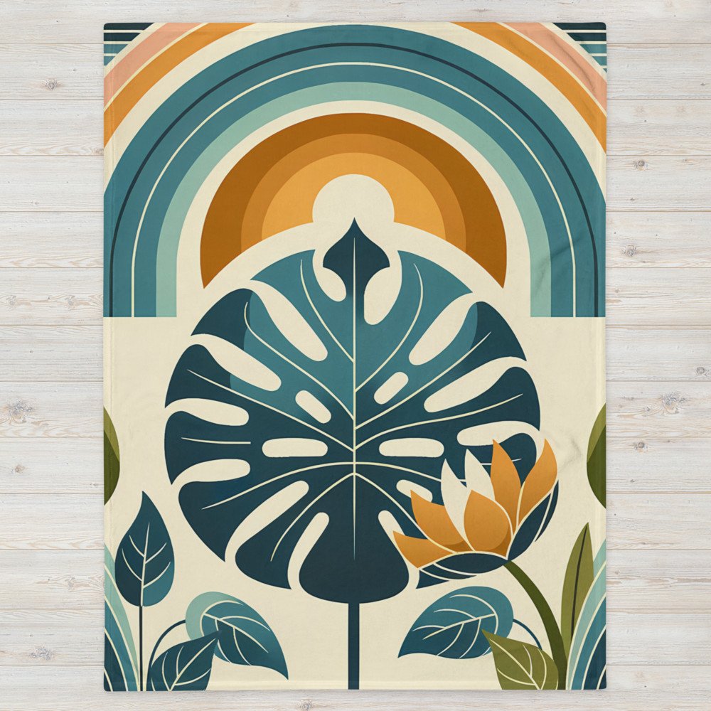 Tropical ArchwayMonstera Leaf with Rainbow Arches Botanical Design — Throw Blanket