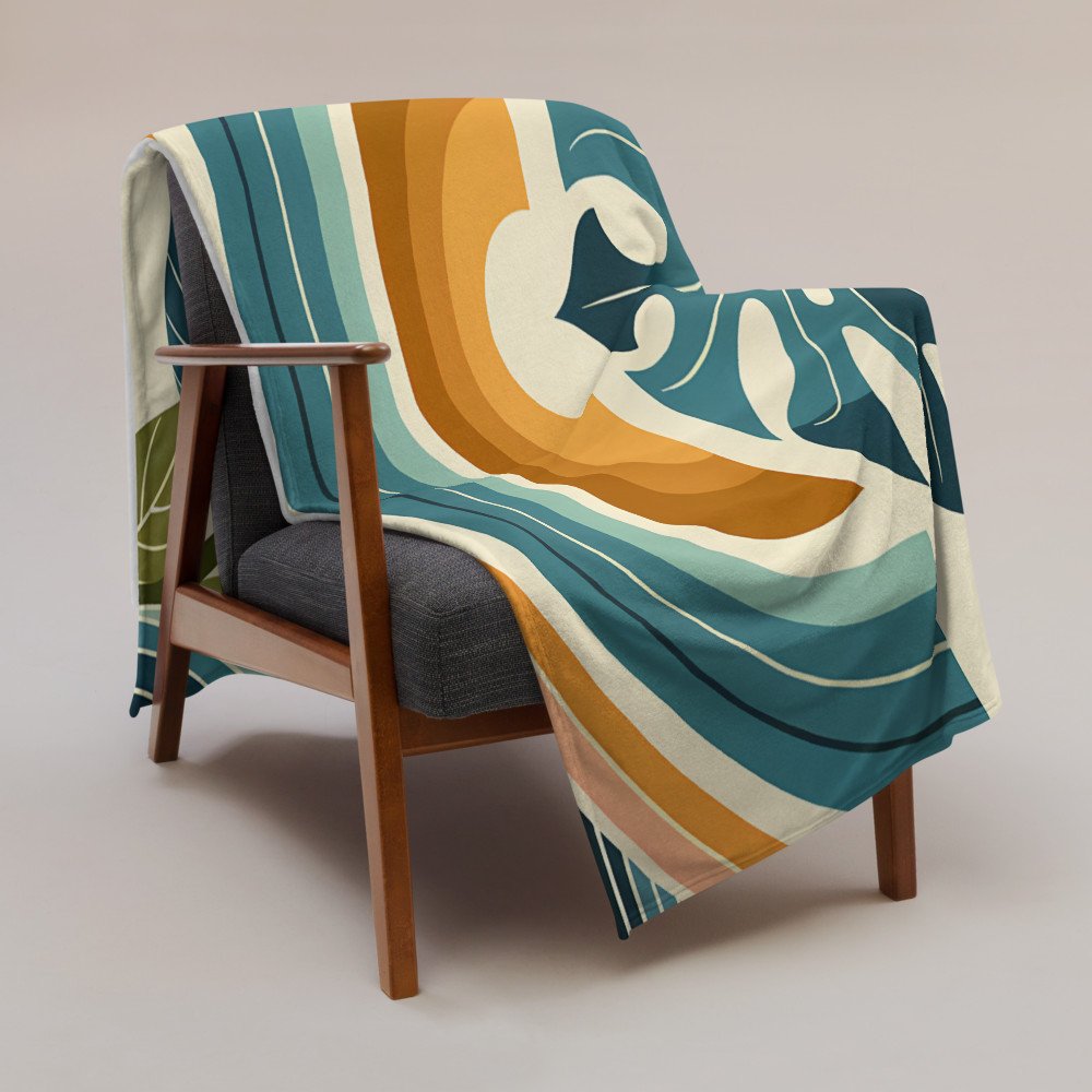 The cosy sherpa fleece of this throw blanket is printed with the tranquil, symmetrical leaf motif. Its generous size and soft texture invite you to unwind alongside the design’s flowing lines and calming, retro-inspired colour palette.
