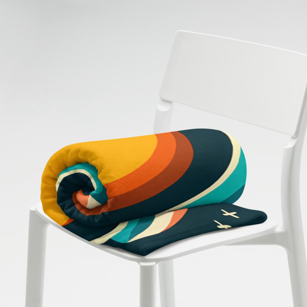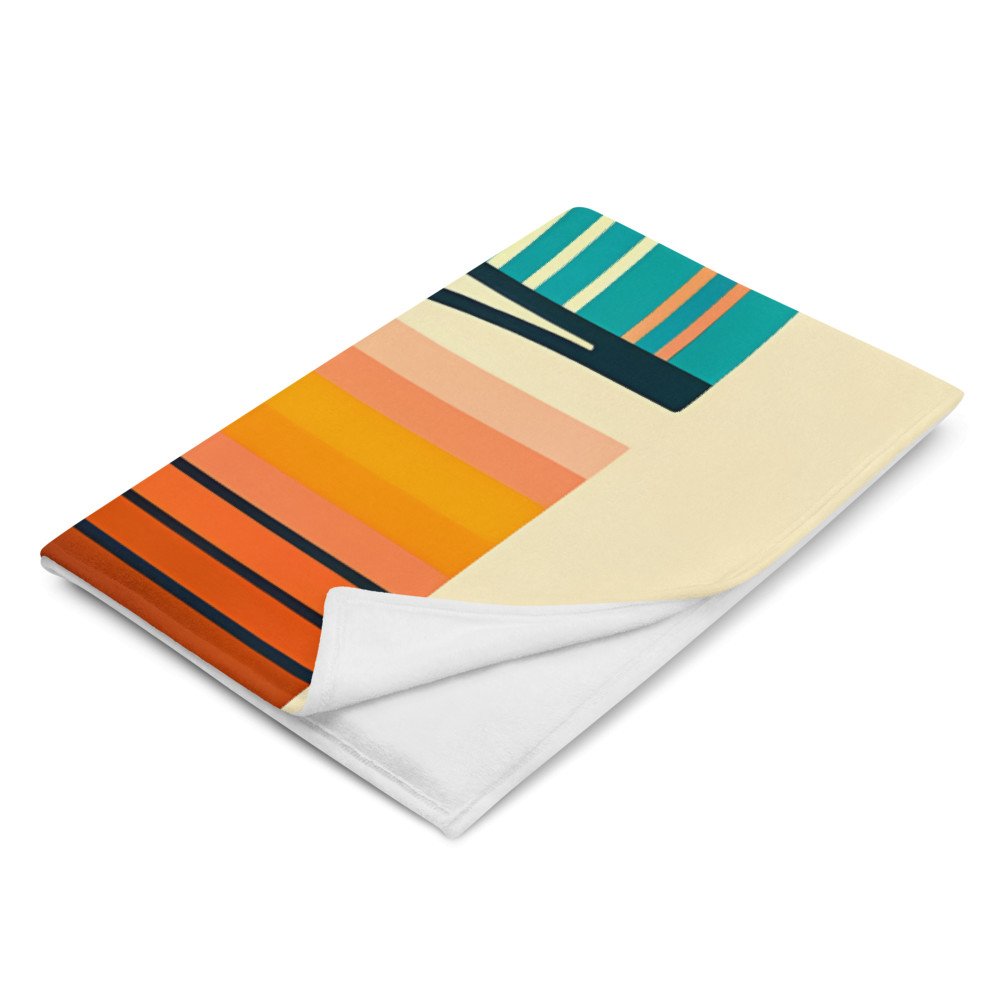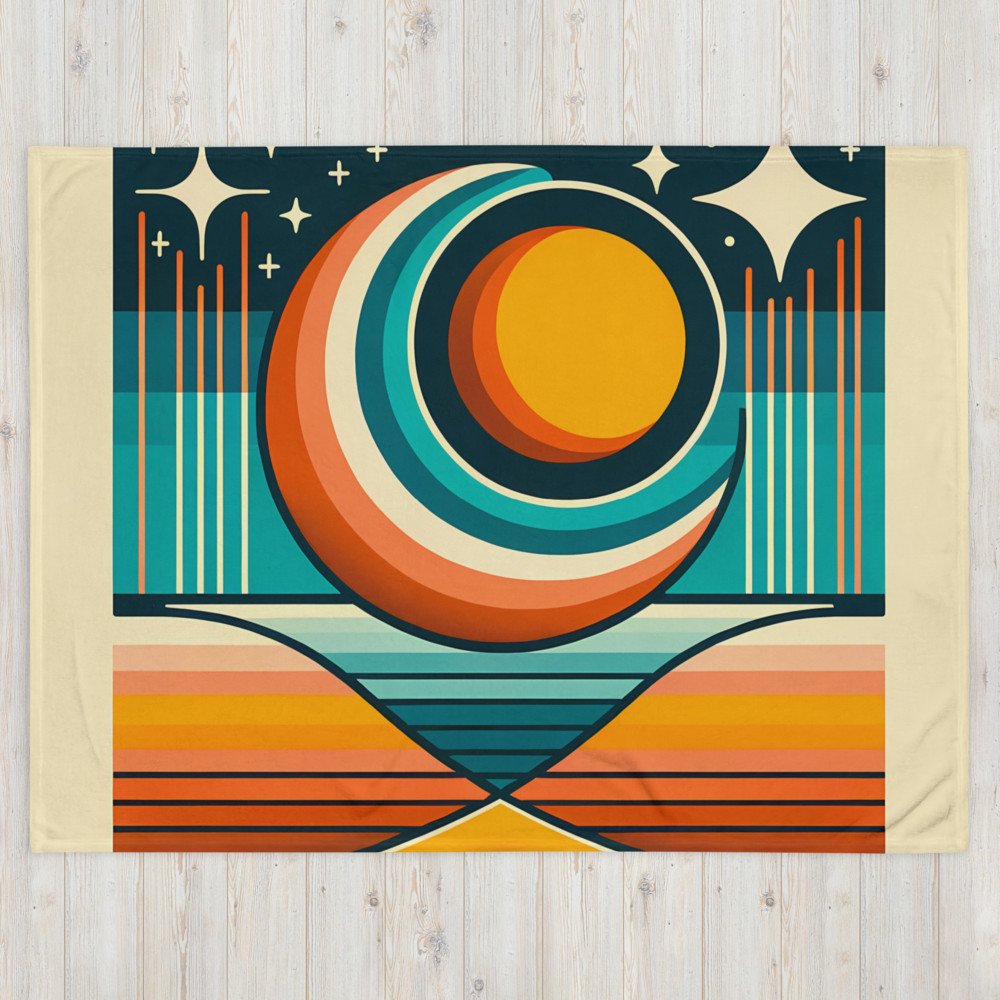Geometric Sun Moon Over Striped Horizon — Throw Blanket