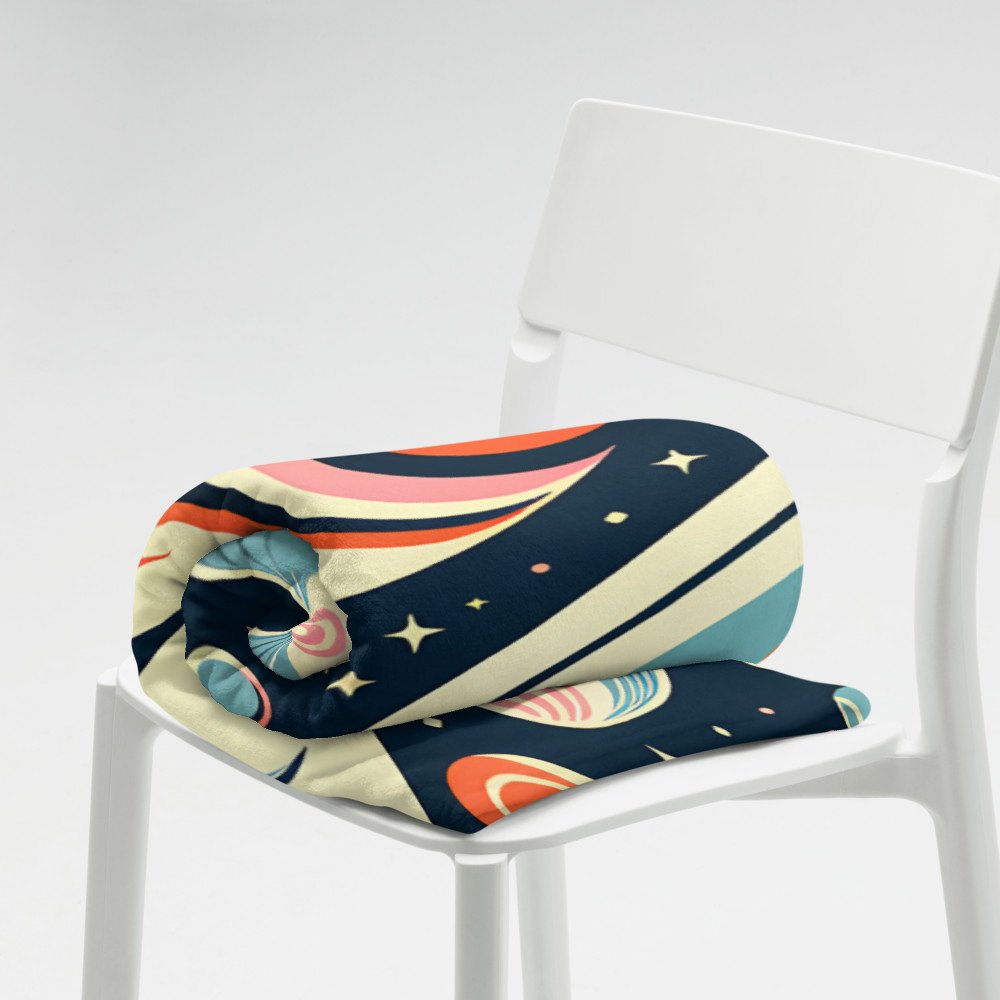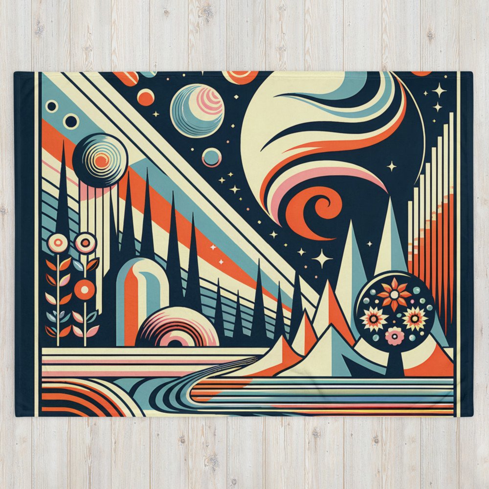 Saturnine HorizonRetro Space Landscape with Planets and Geometric Peaks — Throw Blanket