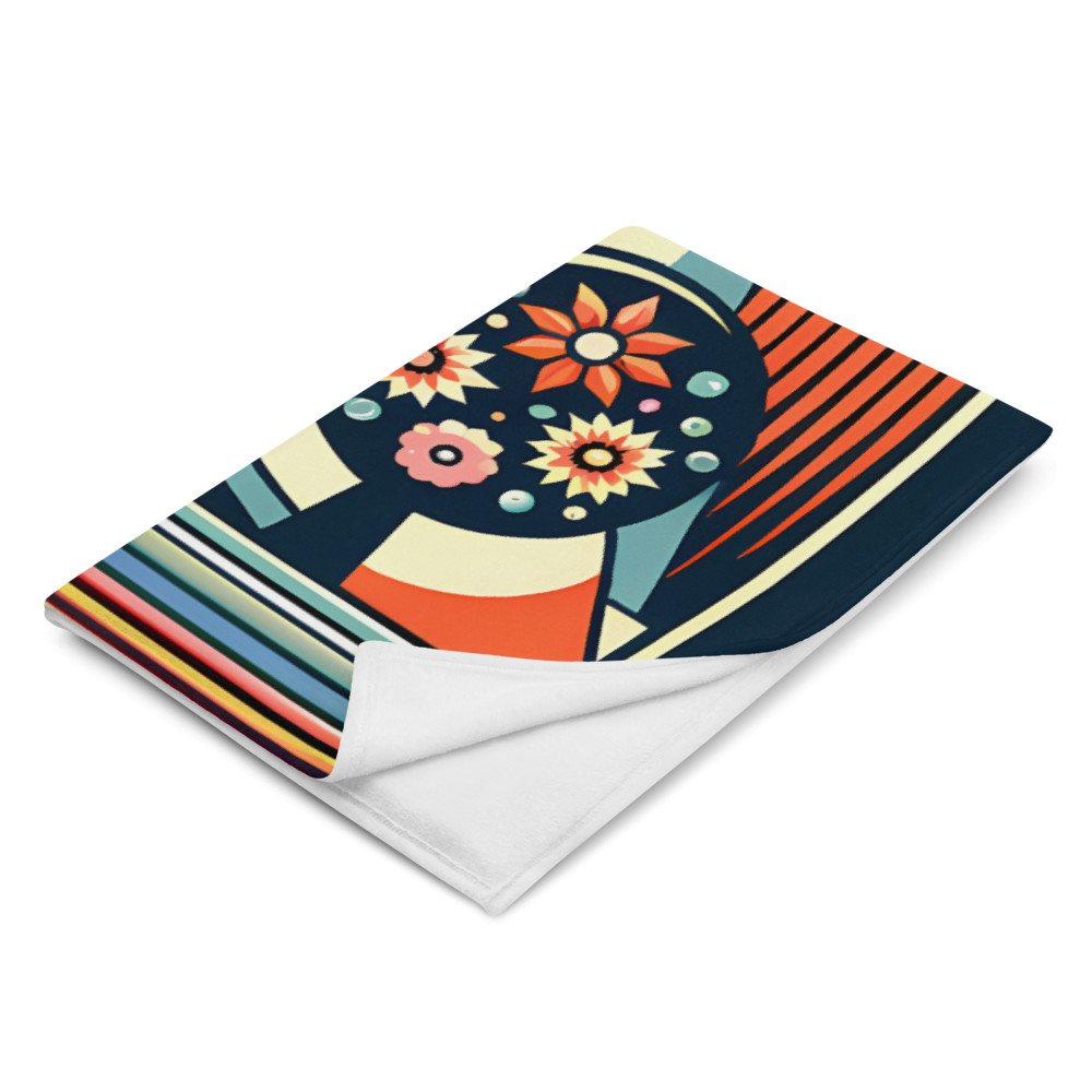 The cosy sherpa fleece material is printed with the full, serene nightscape. Wrap up with the soft geometric peaks and starry sky in teal and coral for a distinctly retro-futuristic comfort.