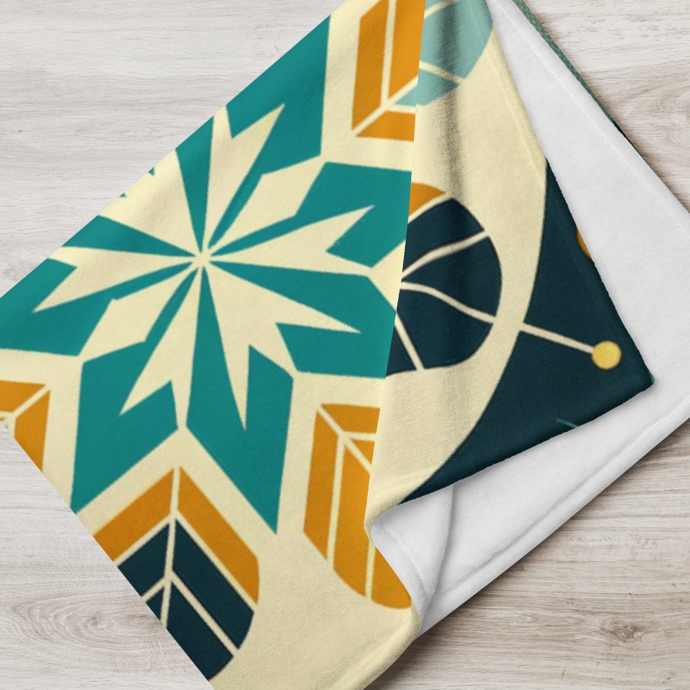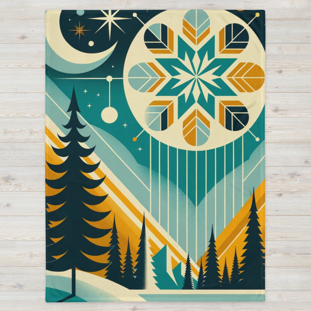 Geometric Winter Moon and Snowflake Landscape — Throw Blanket