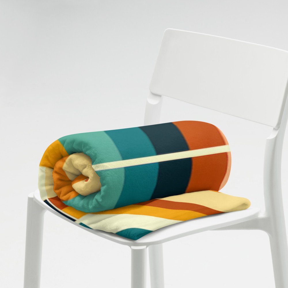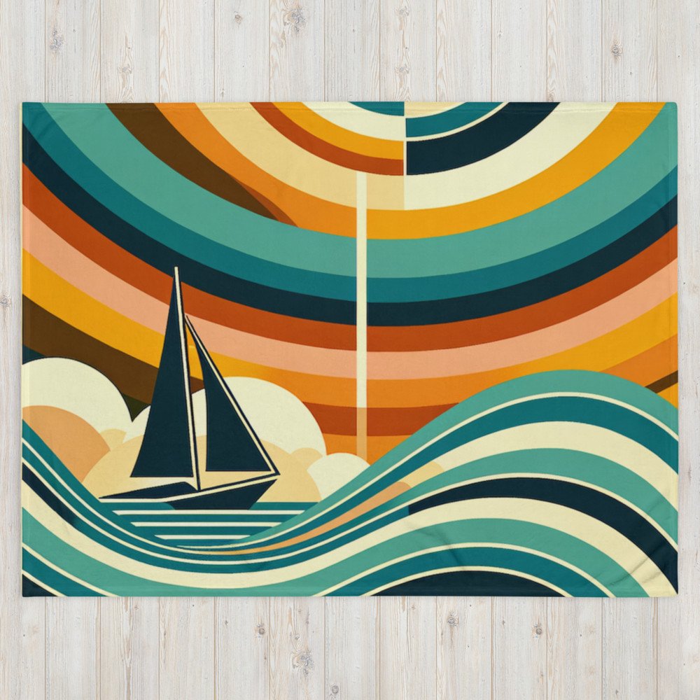 Amber TideGeometric Sailboat Beneath Concentric Sunset Waves — Throw Blanket
