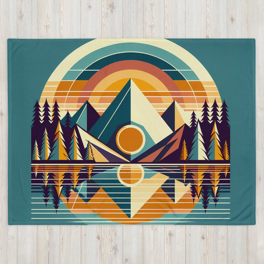 Geometric Mountain Lake Reflection — Throw Blanket
