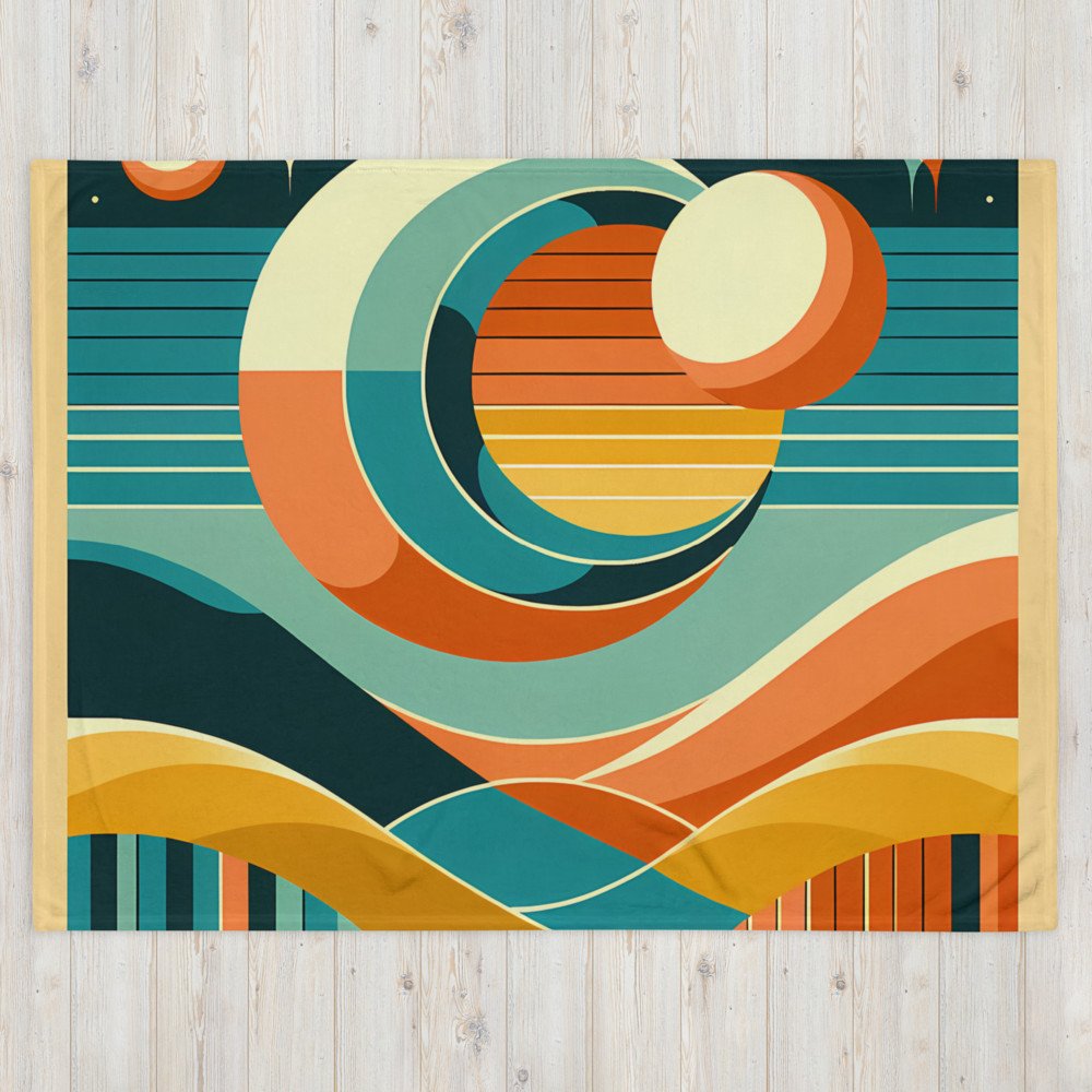 Geometric Sun and Moon Over Abstract Desert — Throw Blanket