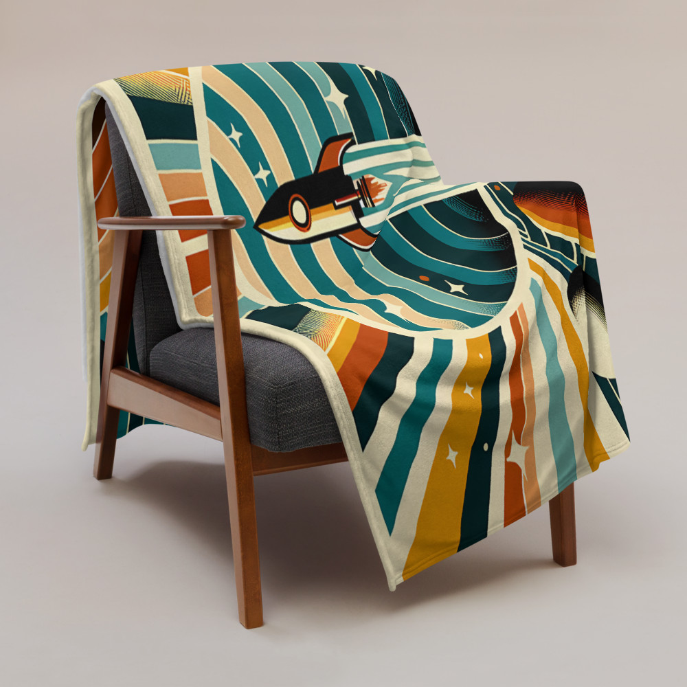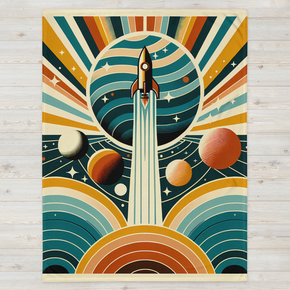 Solar AscentRetro Rocket Launch Through Planet Rings — Throw Blanket
