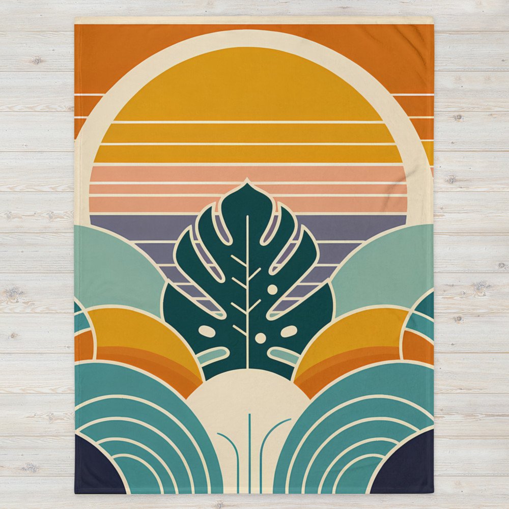 Amber CanopyGeometric Monstera Sunset — Throw Blanket