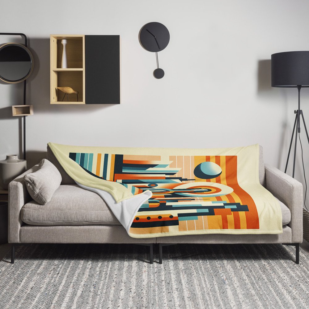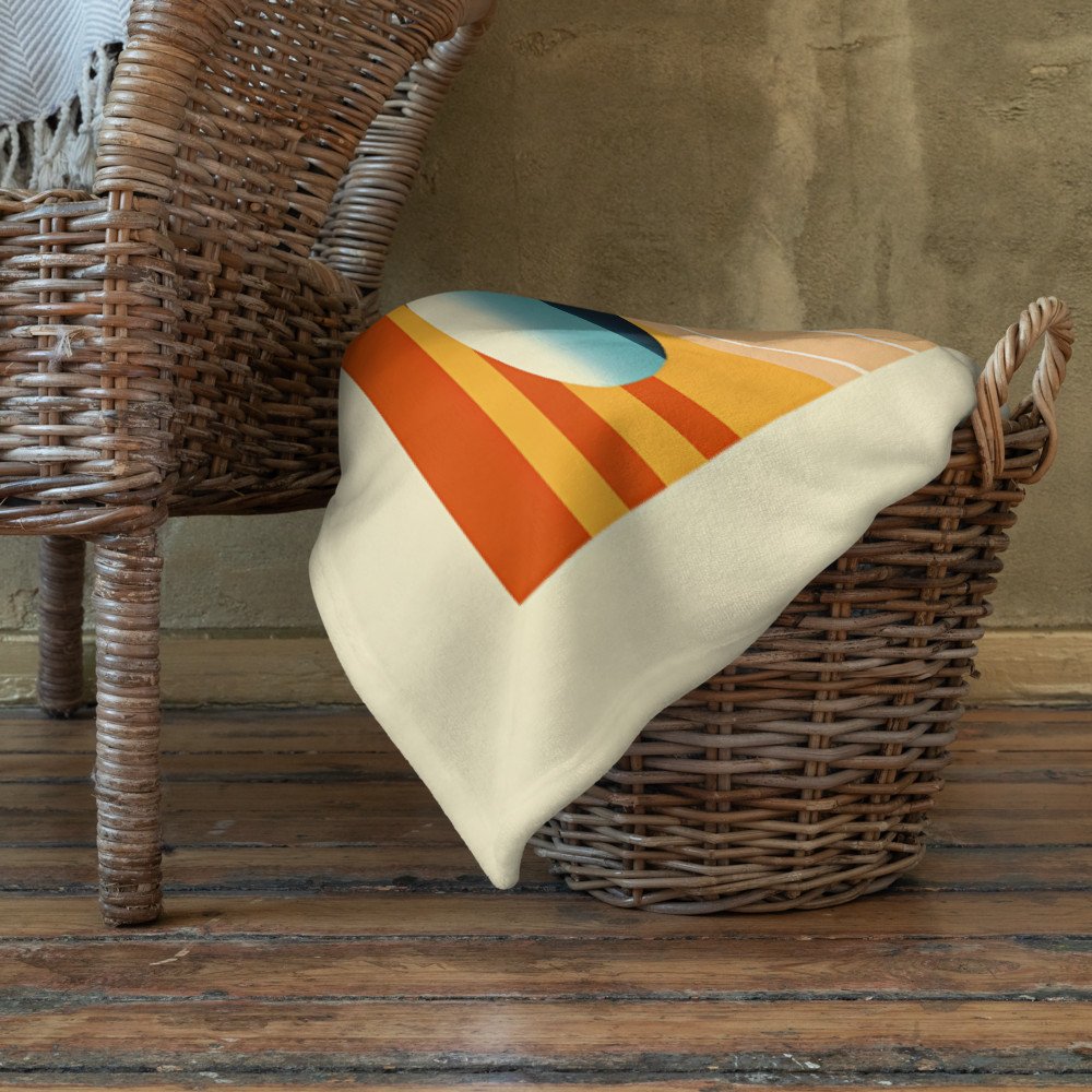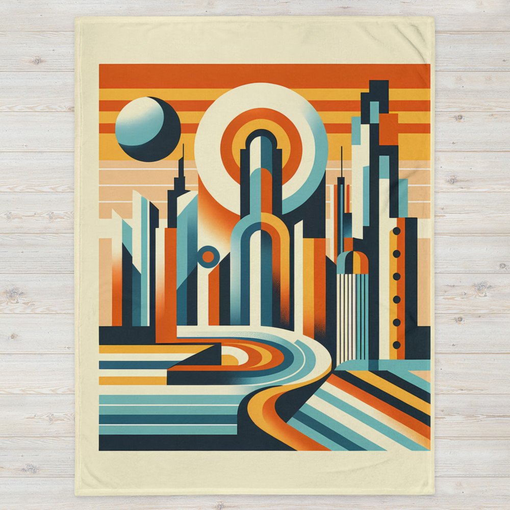 Urban MirageRetro Futurist Cityscape with Sun and Curved Road — Throw Blanket