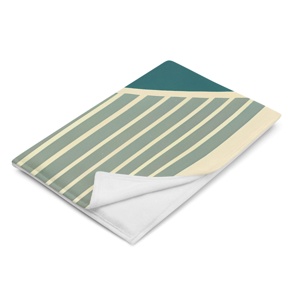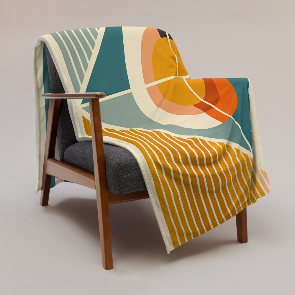 Sherpa fleece makes this 50x60-inch throw a cosy companion for cool evenings, with the retro sun and triangle pattern adding visual warmth. The ochre and deep teal shapes feel grounded against the cream background, wrapping you in a mid-century mood without the weight.