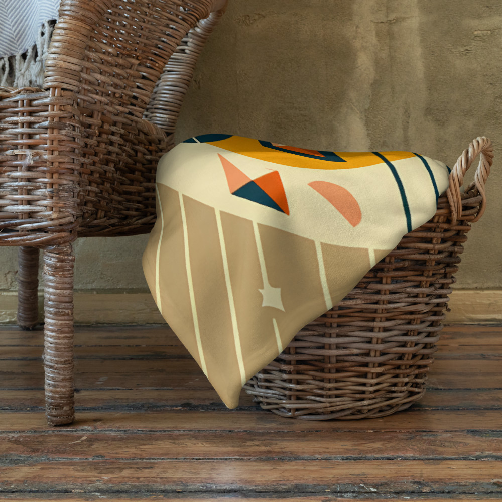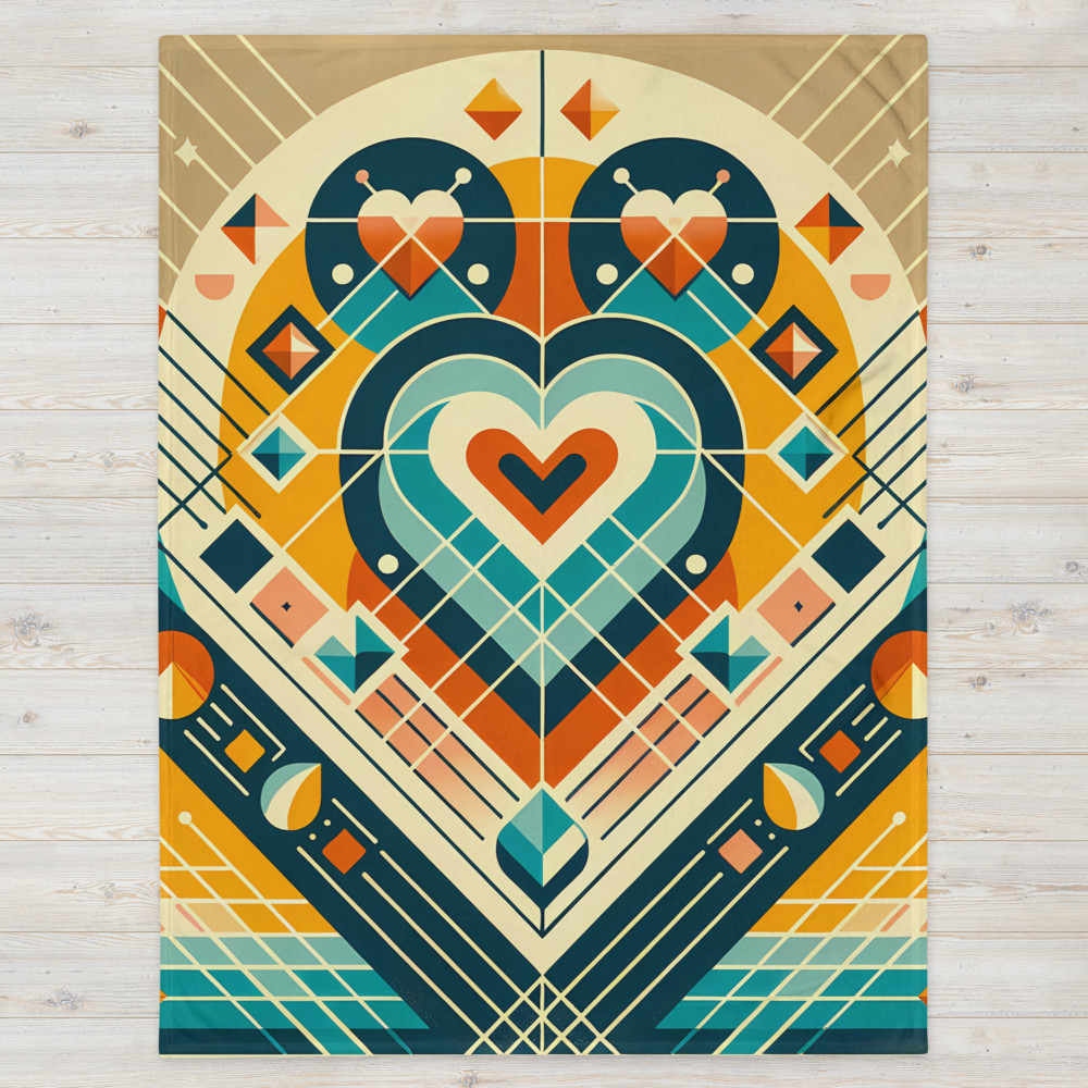 Amber MeridianSymmetrical Geometric Heart in Teal and Amber — Throw Blanket