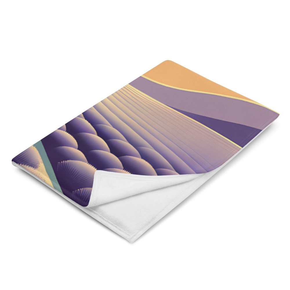 The cosy, soft sherpa fleece of this throw is printed with the serene sunset landscape. Wrapping up in the warm cream, teal and purple hues of the geometric design makes for a comforting retreat.