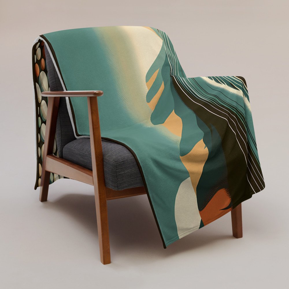 Retro Canoe on Pebble Beach Mountain Coast — Throw Blanket