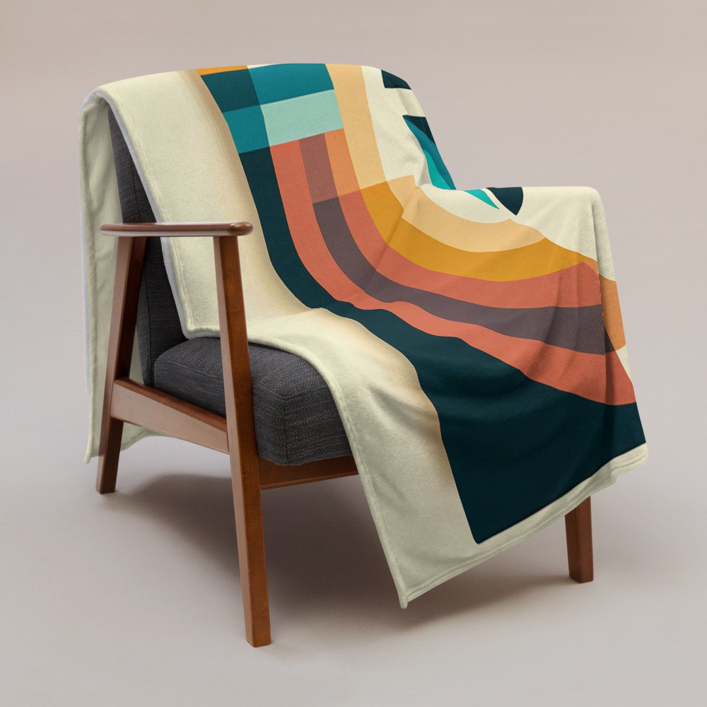 Retro Geometric Sailboat Sunset Art — Throw Blanket