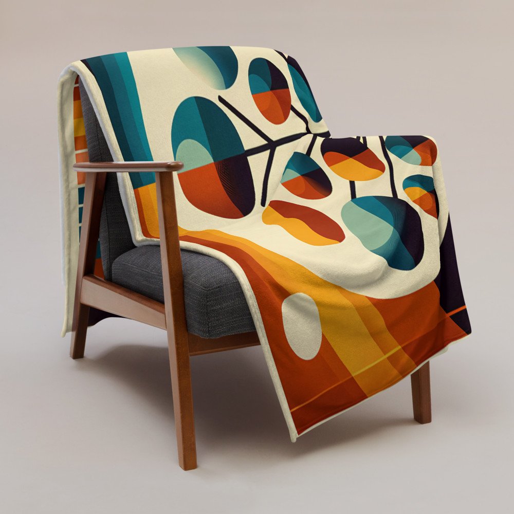 Mid Century Modern Geometric Tree in Teal and Orange — Throw Blanket
