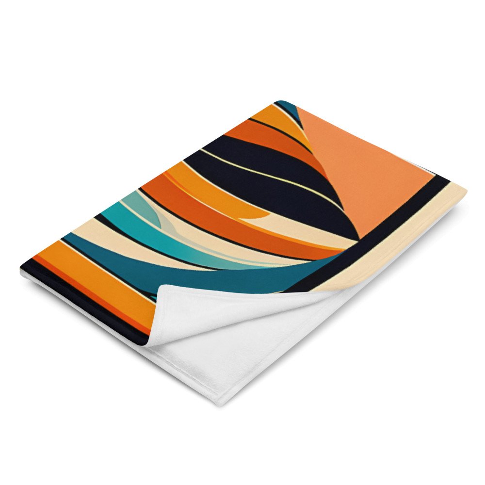 Retro Abstract Feather Waves in Teal and Orange — Throw Blanket