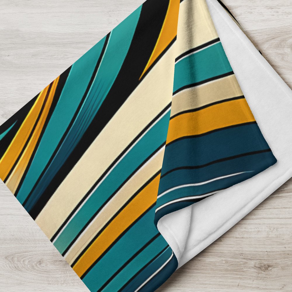 Abstract Peacock Feather in Teal and Gold — Throw Blanket