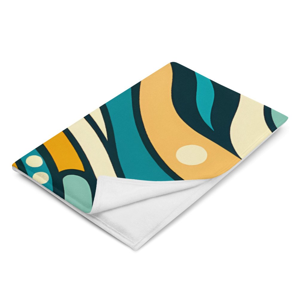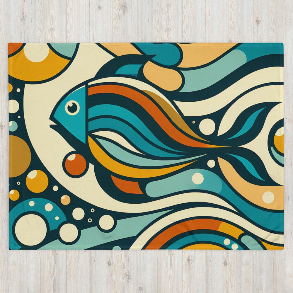 Retro Geometric Fish Abstract Waves in Teal and Orange — Throw Blanket