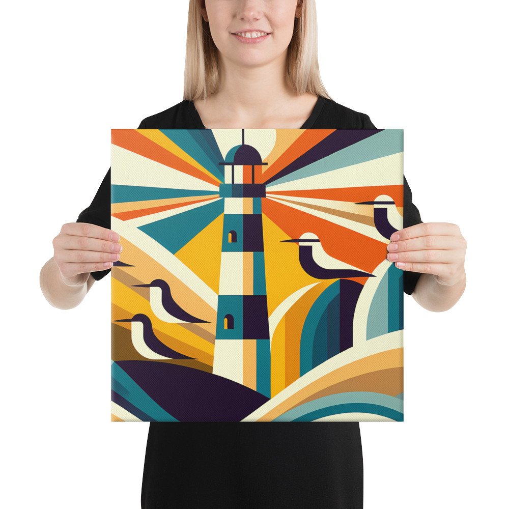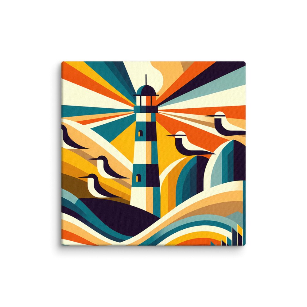 Retro Lighthouse Rays and Seagulls — Canvas Print