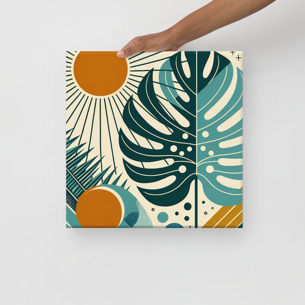 Geometric Monstera Leaves with Sunburst — Canvas Print