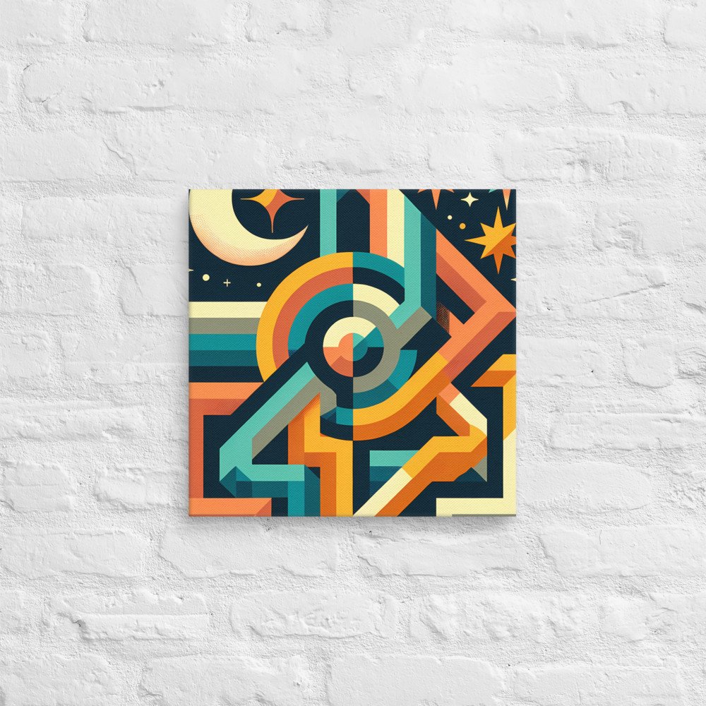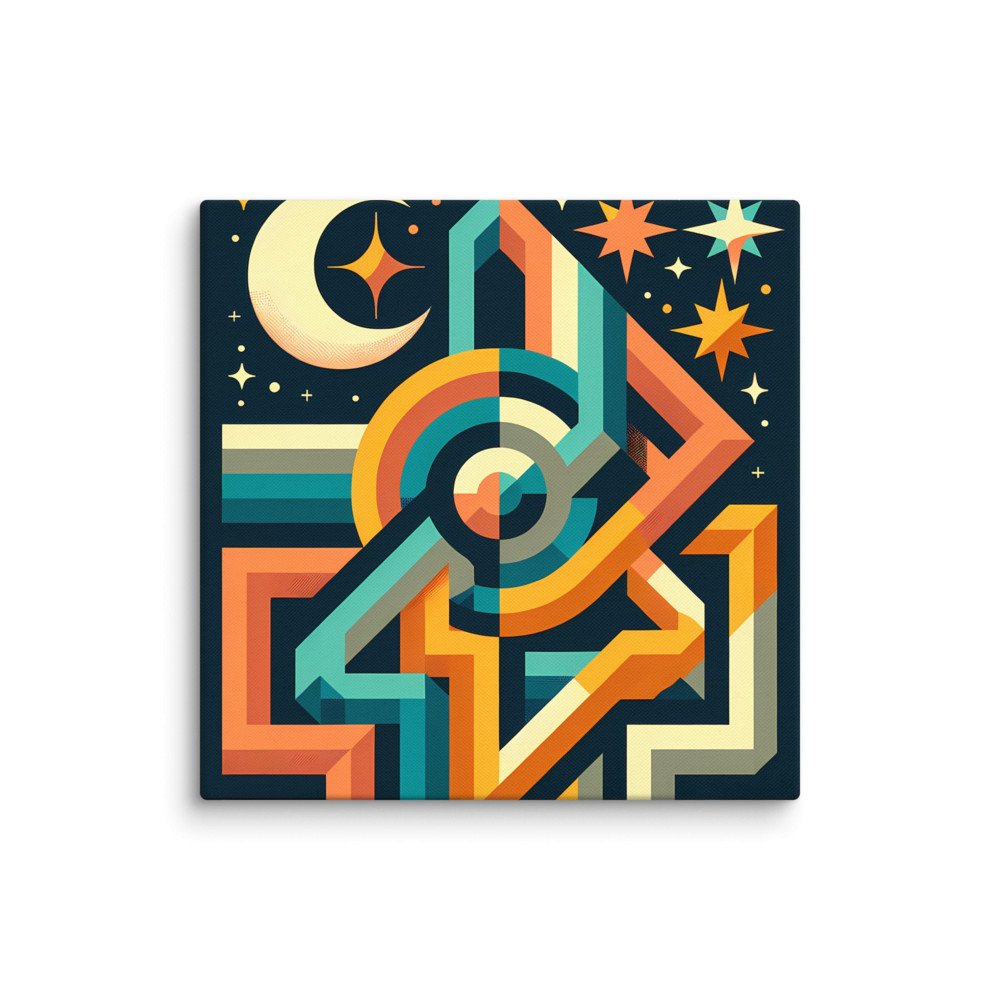 Geometric Number Collage with Moon and Stars — Canvas Print