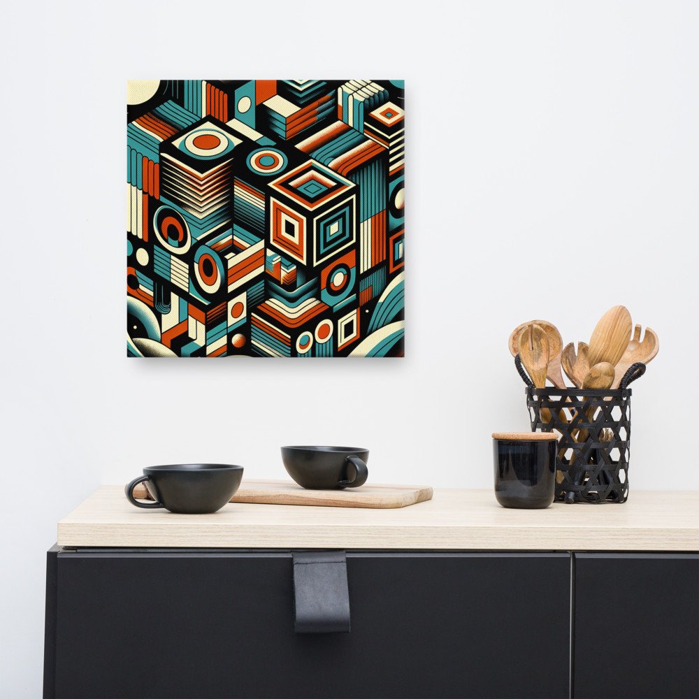 Cosmic ArrayRetro Geometric Space Cubes in Teal and Orange — Canvas Print