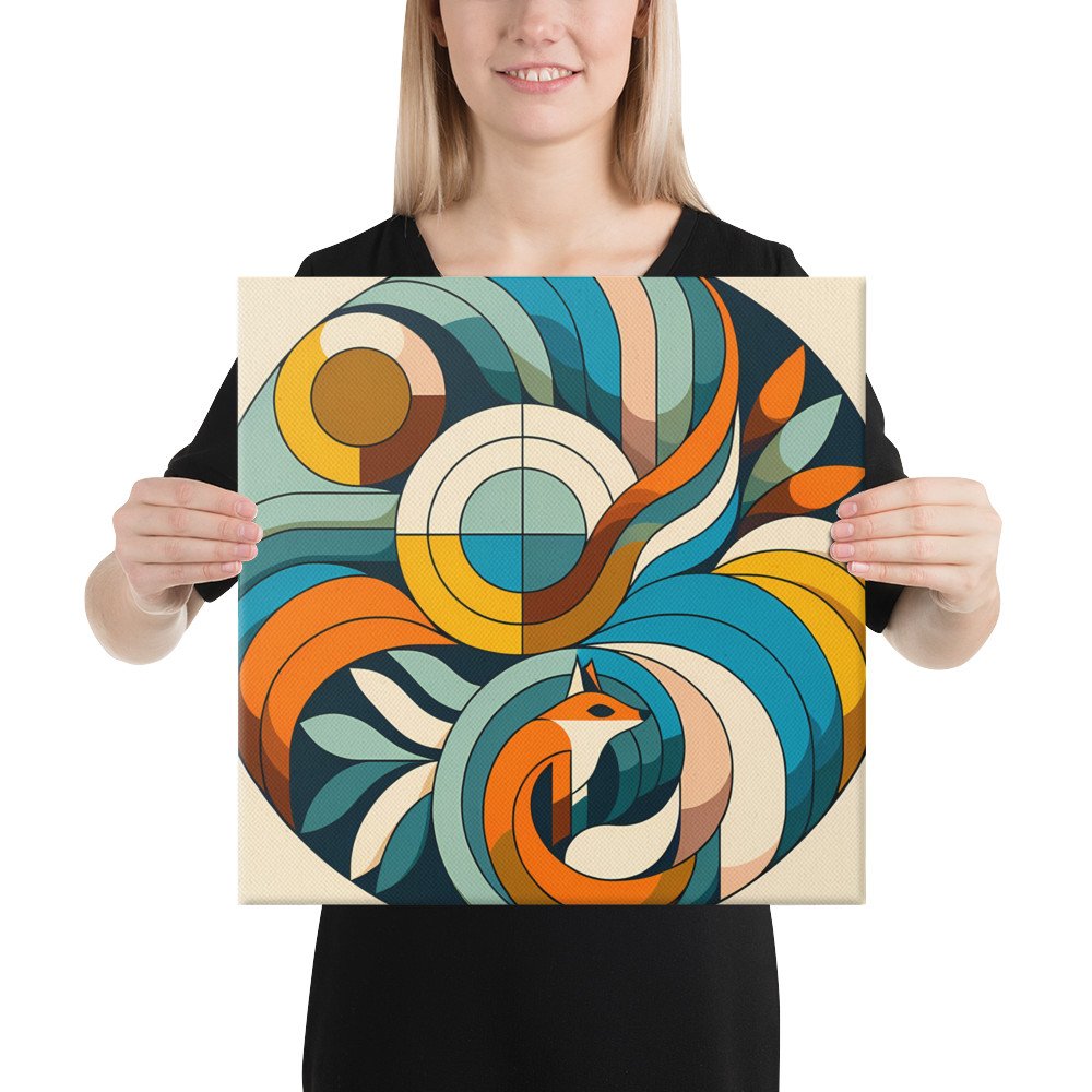 Geometric Fox in Abstract Botanical Circle — Canvas Print