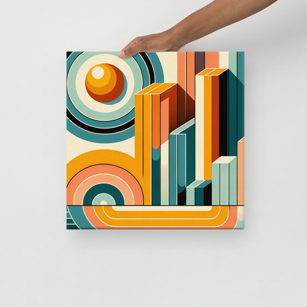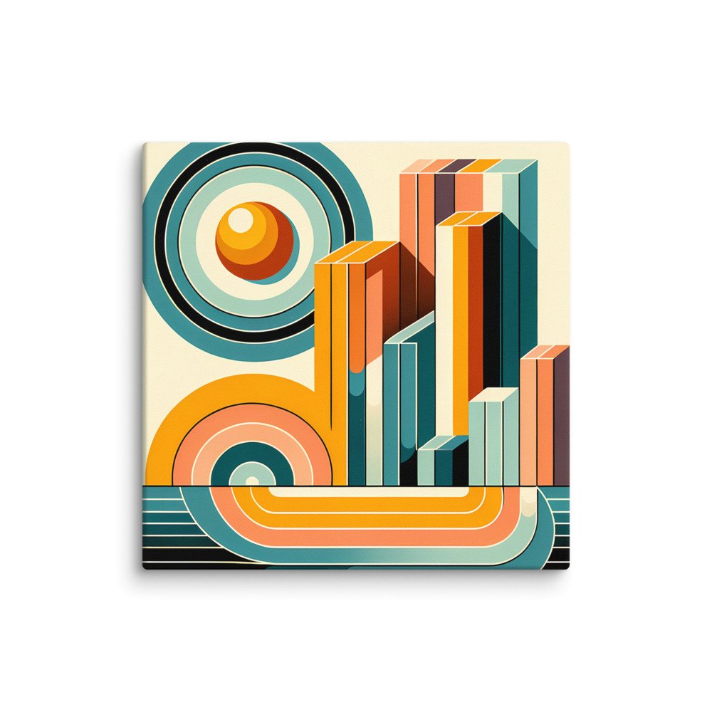 Retro Geometric Letter J in Teal and Orange — Canvas Print