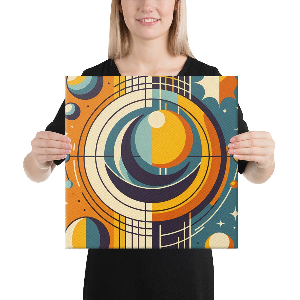Geometric Sun and Moon Orbit Illustration — Canvas Print