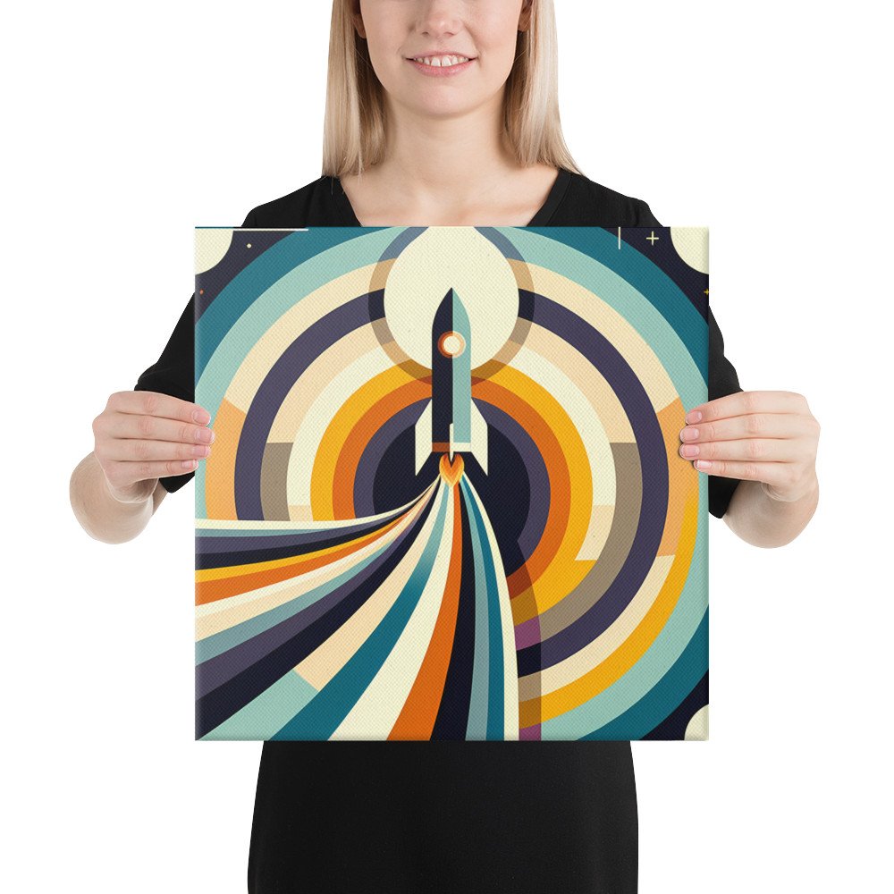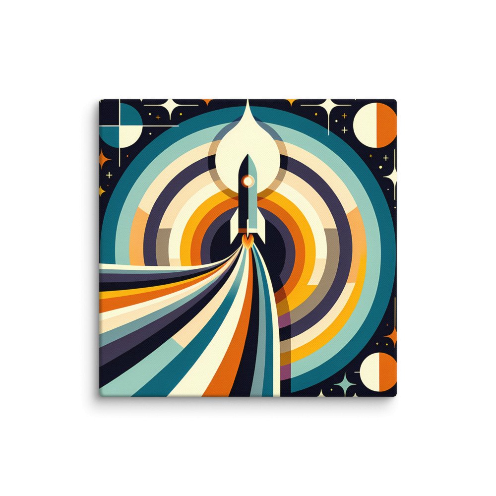 Retro Rocket Launch Geometric Space Illustration — Canvas Print