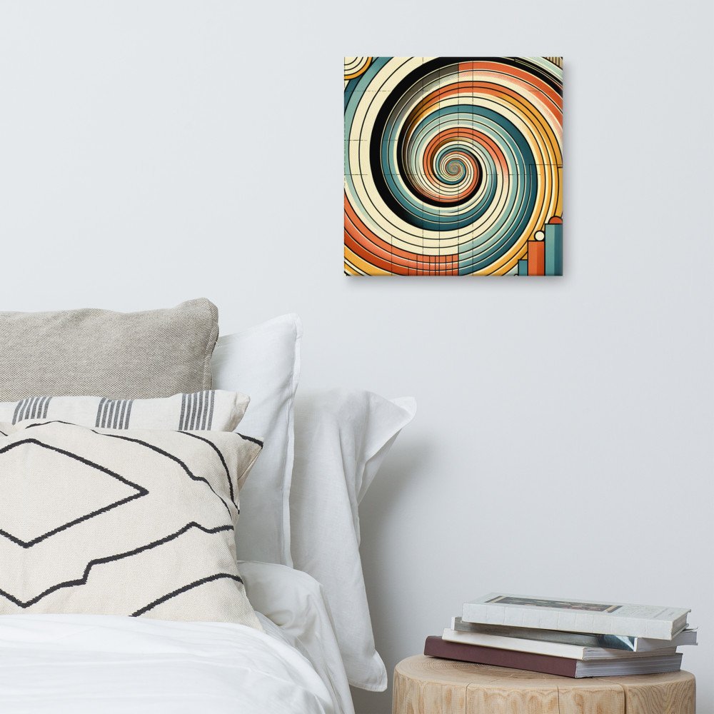 Retro Geometric Spiral Abstract in Teal and Orange — Canvas Print
