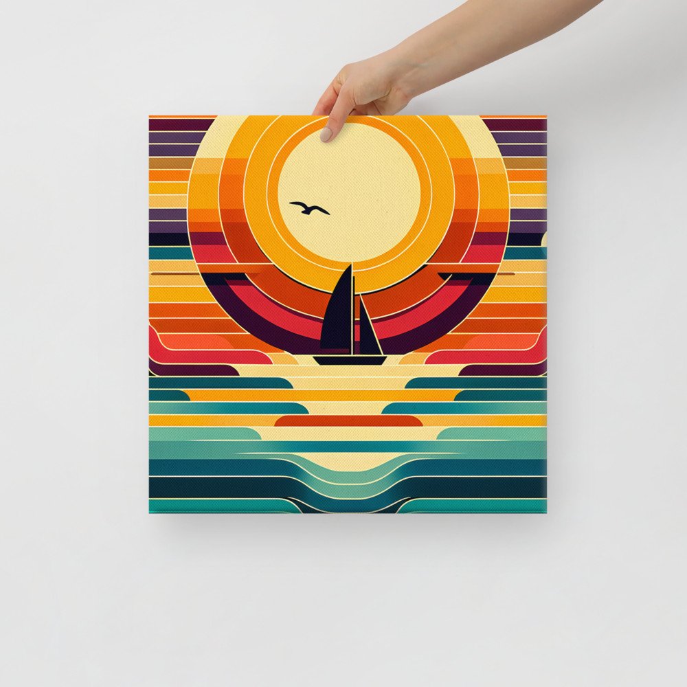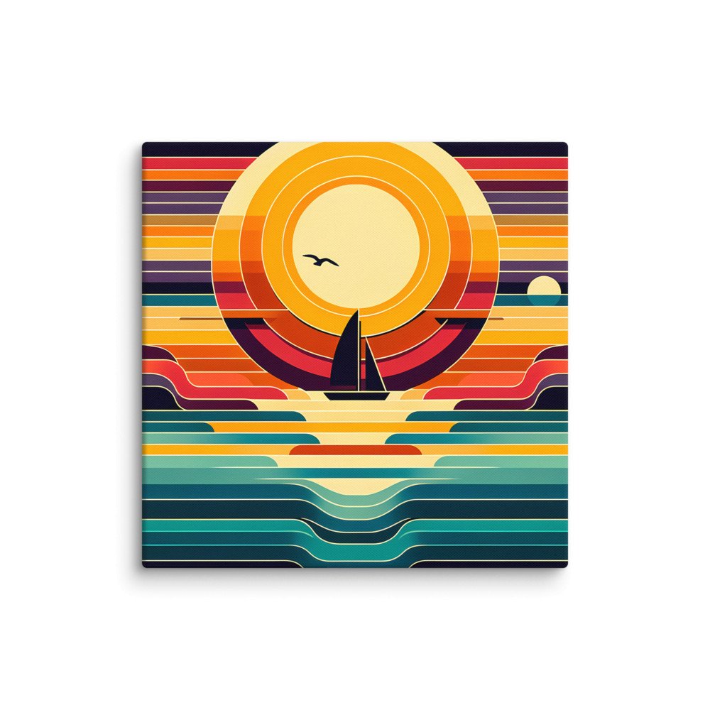 Geometric Sunset Sailboat Colour Block — Canvas Print