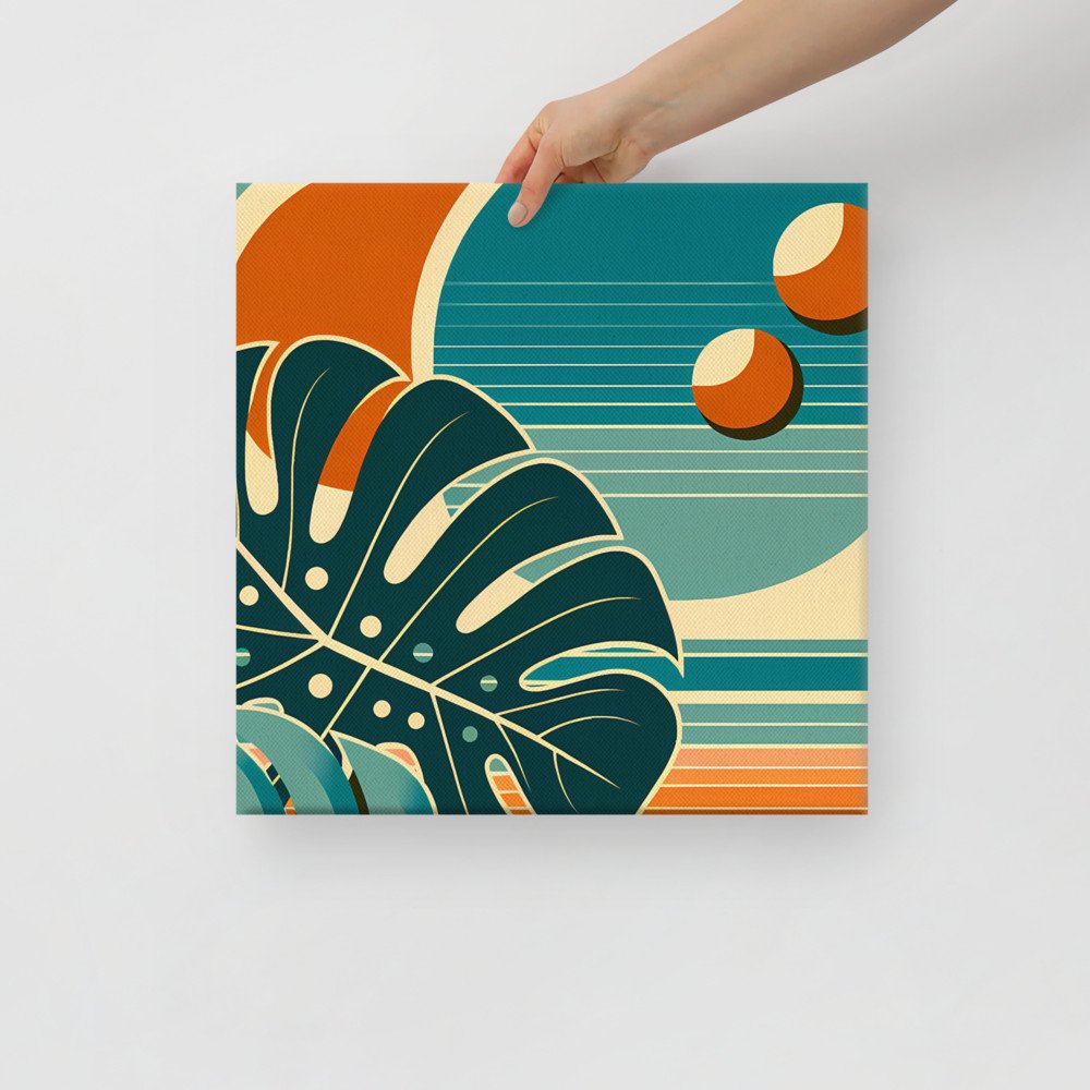 Abstract Monstera Leaf Sunset Geometry — Canvas Print