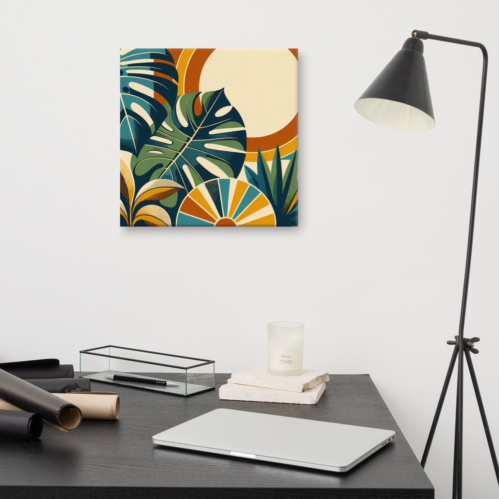 Abstract Botanical Sun and Monstera Leaves — Canvas Print