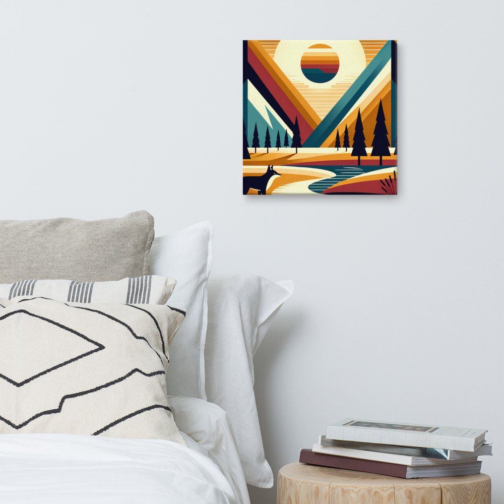 Geometric Mountain Peaks with Fox and Sunset — Canvas Print