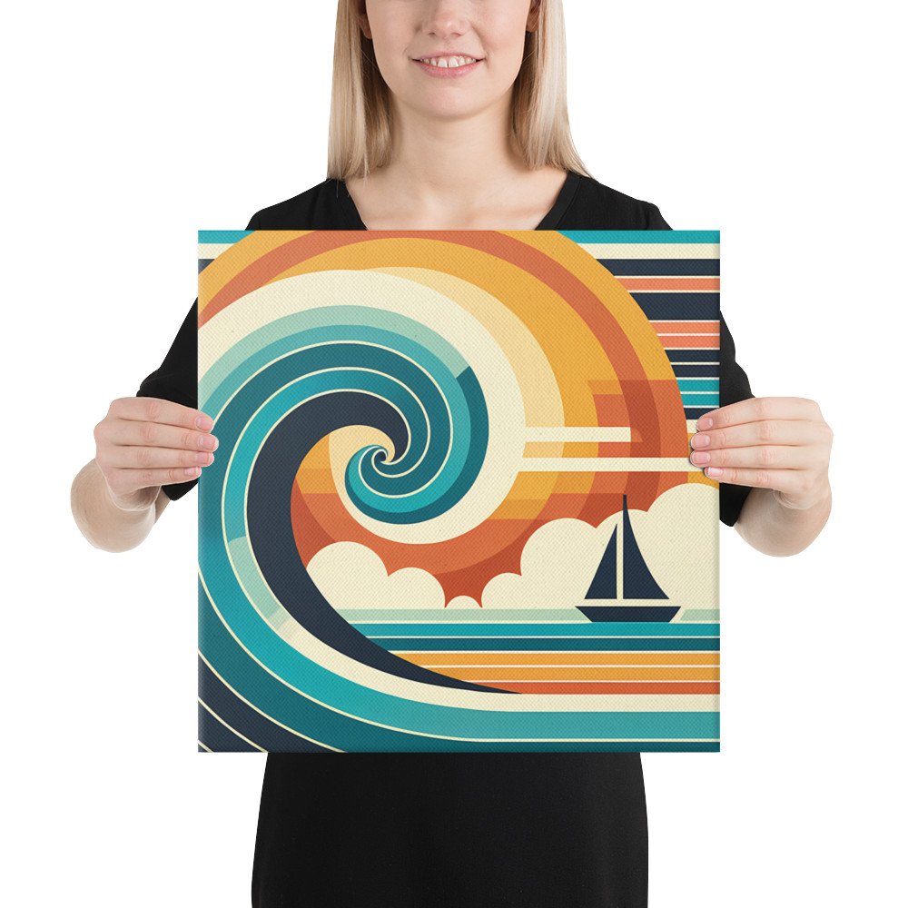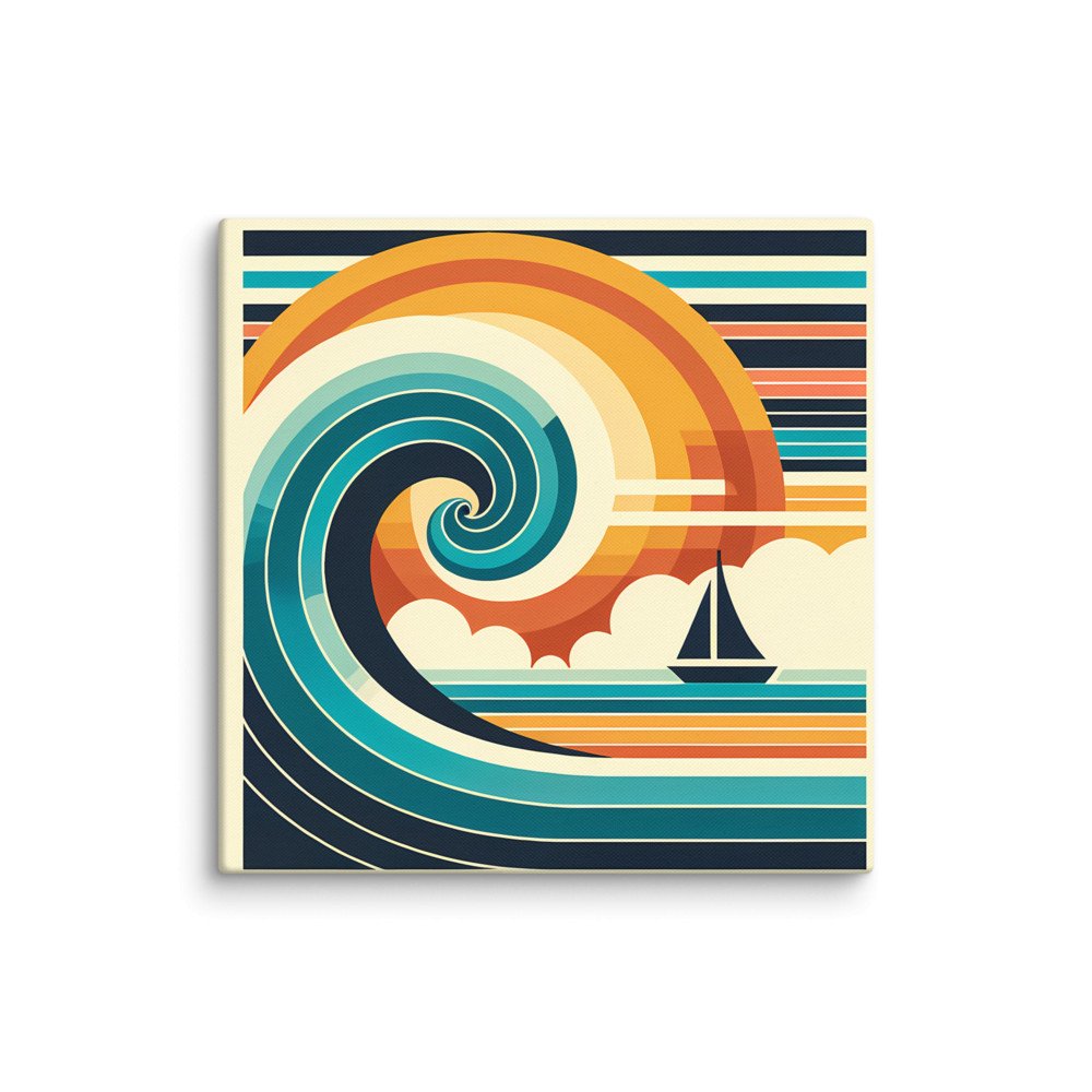 Geometric Wave and Sailboat Sunset — Canvas Print