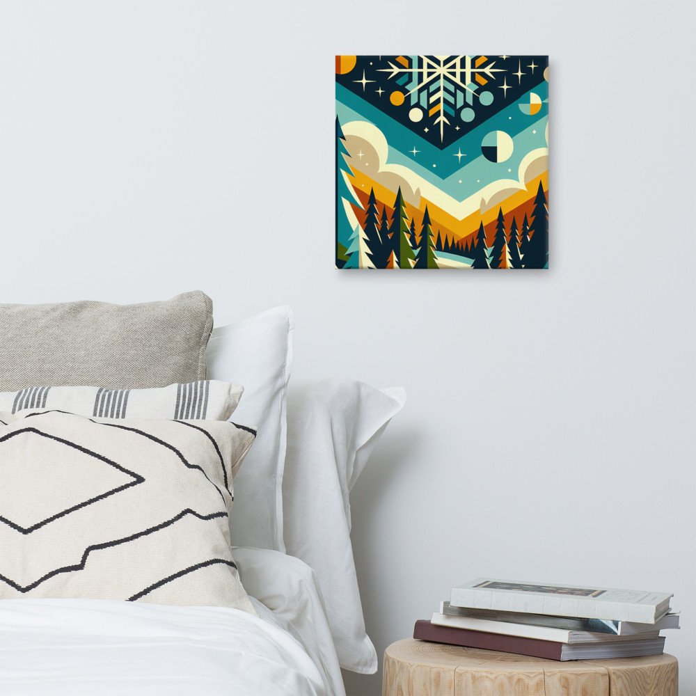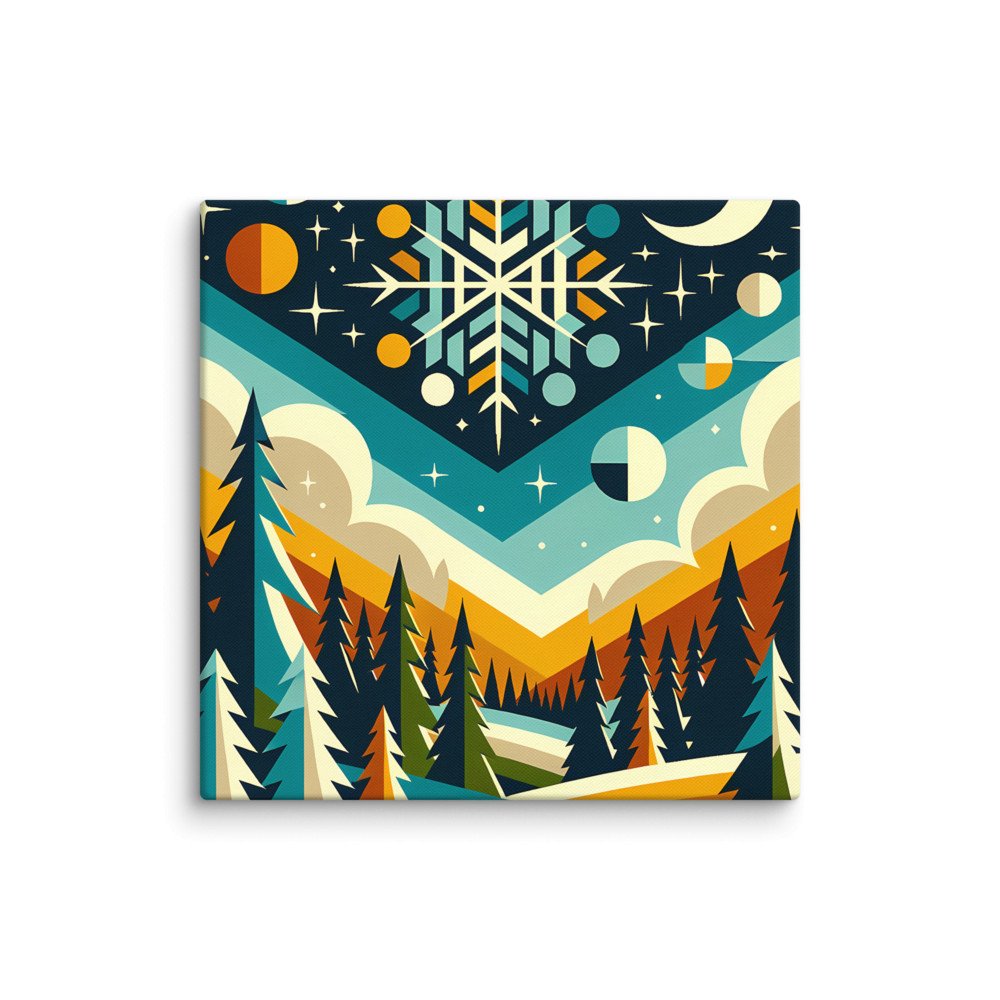 Geometric Snowflake Winter Forest — Canvas Print
