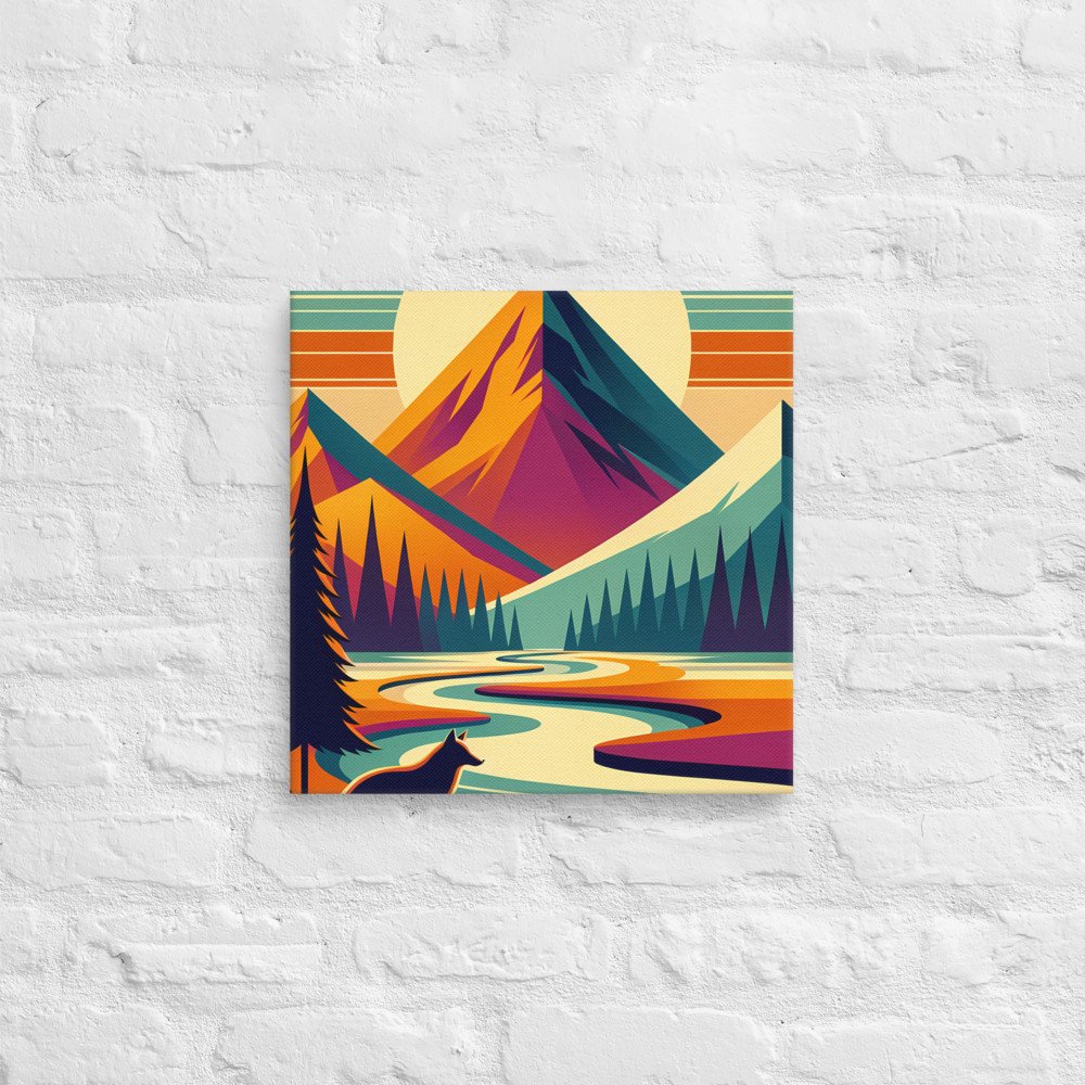Geometric Mountain Landscape with Fox and River — Canvas Print