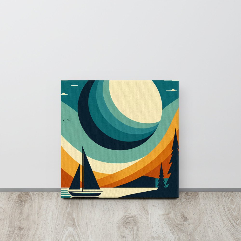 Geometric Moon Over Lake Sailboat — Canvas Print