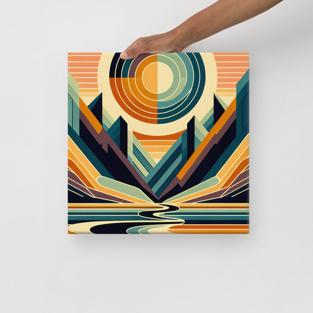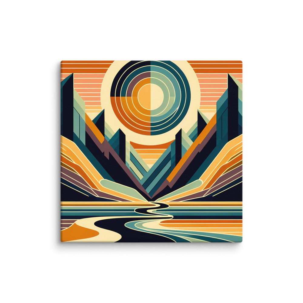 Valley SunburstGeometric Sun Over Mountain Valley — Canvas Print
