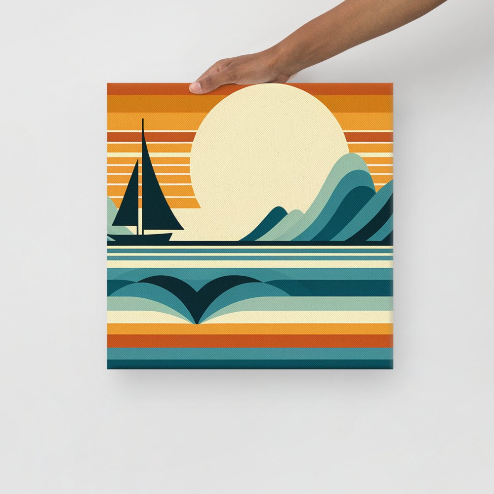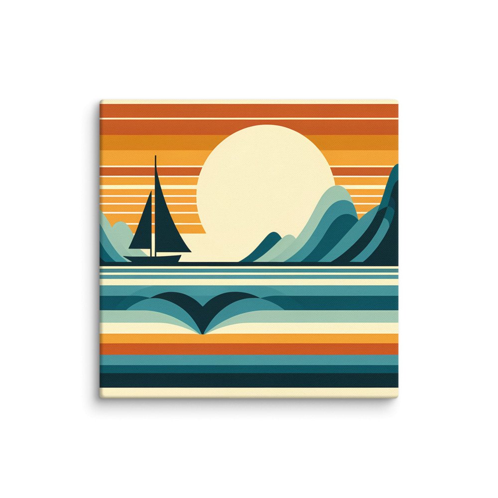 Retro Geometric Sailboat Sunset Art
