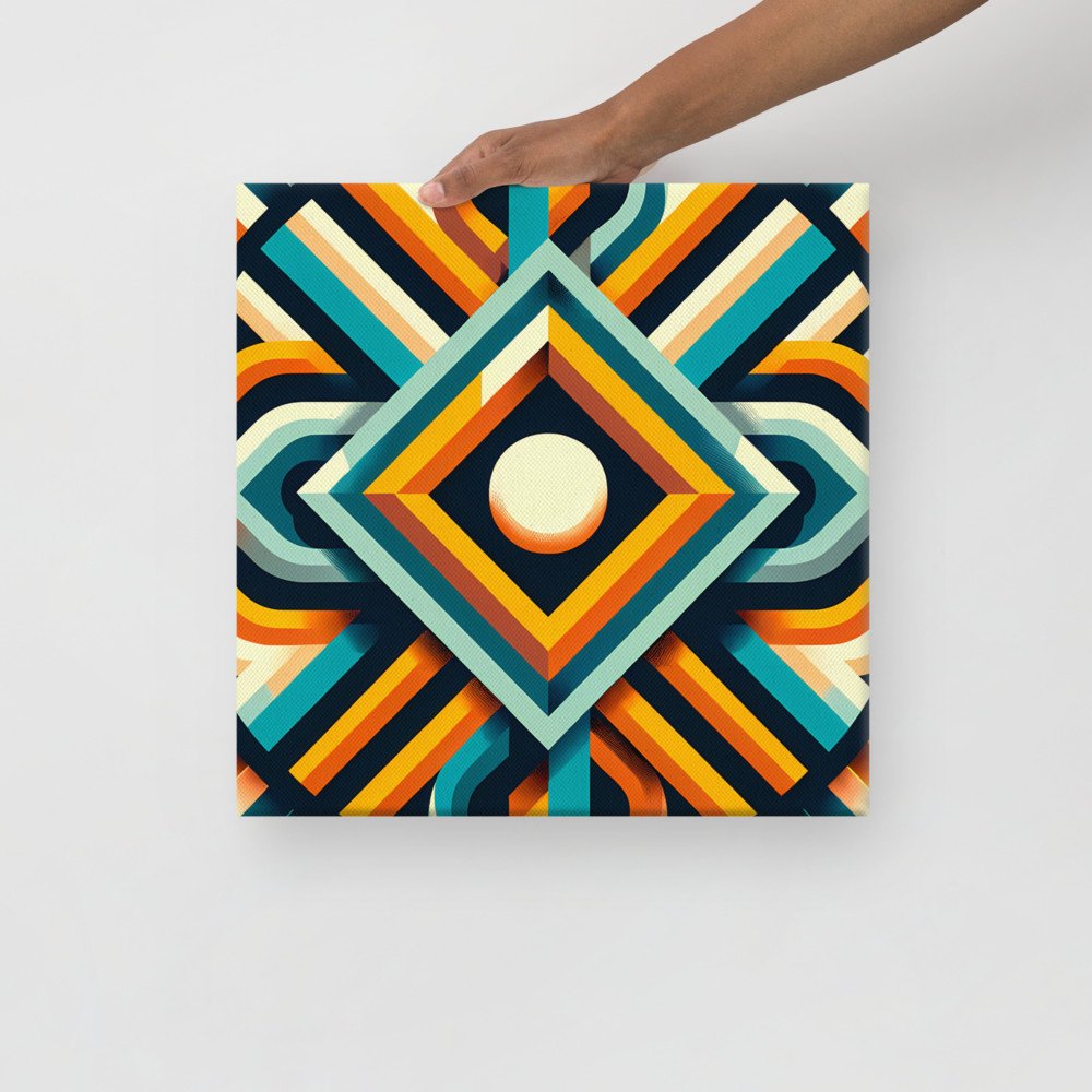 Retro Geometric Diamond Sunburst — Canvas Print