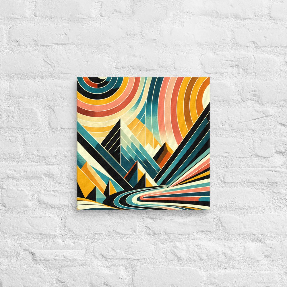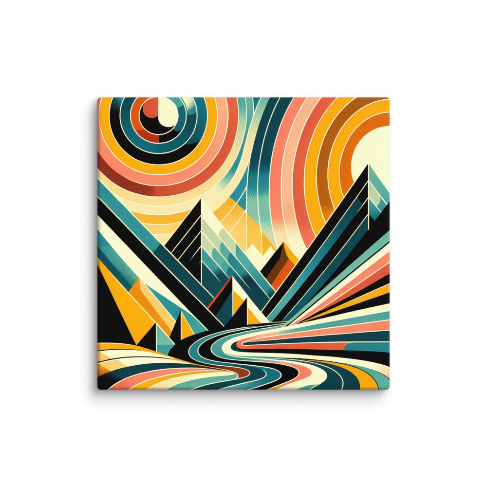 Geometric Mountain Silhouettes with Retro Sun Rings — Canvas Print