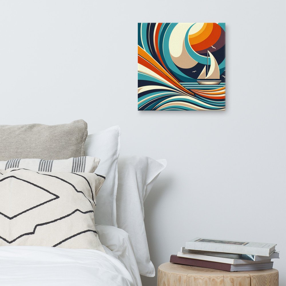 Abstract Sailboat in Geometric Waves — Canvas Print