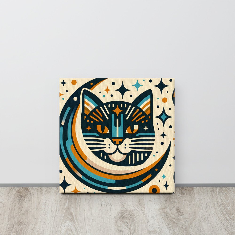 Celestial Cat Moon Graphic — Canvas Print
